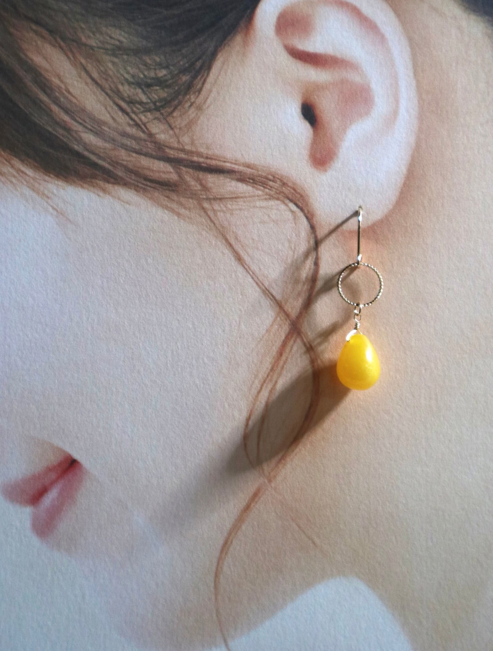 つぶつぶの形が可愛いハニーカラージェードのピアス。